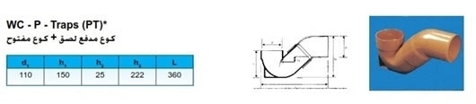 110 مم UPVC P-trap S/C (4 "Bend 45 °+4"